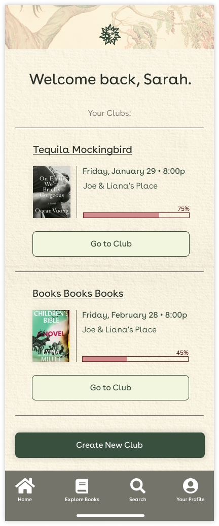 Book clubs are a great way for people to bond over a shared love of reading, but can be difficult to facilitate and manage due to schedules, decisions around what to read, and encouraging participation. My app is designed with a number of tools to encourage readers to stay engaged with their readings and club.